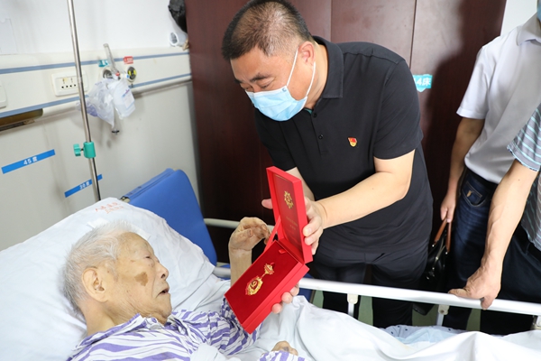 为隆重庆祝中国共产党成立100周年,按照党中央决定和市委组织部、市国资委党委有关文件要求,6月23日至24日,集团领导陈健、周进、刘克伟、夏煦分别代表集团党委前往城建集团抗战老党员王启荣、市政交通公司离休老党员吴跃、市政交通公司离休老党员陶稳和安装集团离休老党员康新进等家中或医院为离休老干部们颁发了“光荣在党50年”纪念章,向他们表示诚挚的问候和敬意。