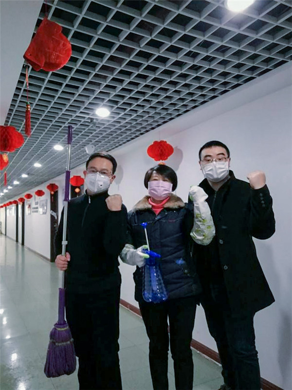 2月8日,第一批“建设志愿者”正式上线。“消毒工作做细点,就是对职工负责!”“疫情期间,虽然不能上防疫前线,但是为公司职工们做点事,我还是可以的。”现场防护口罩、酒精、84消毒液等物资齐备,多名志愿者分工明确,减少近距离接触,在分公司办公区域、电梯口、厕所、垃圾桶等重点部位用喷壶进行消毒杀菌,同时用拖把对地面进行了清理消毒。消毒结束后,虽然身体很疲惫,他们却没有一句怨言,为抗击疫情贡献自己微薄的力量。