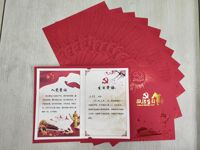 近日,设计院党总支为全体党员购买了“政治生日”贺卡,以党支部为单位,统计党支部党员的入党时间,合理规划好每季度过“政治生日”的对象,确保党员全覆盖。