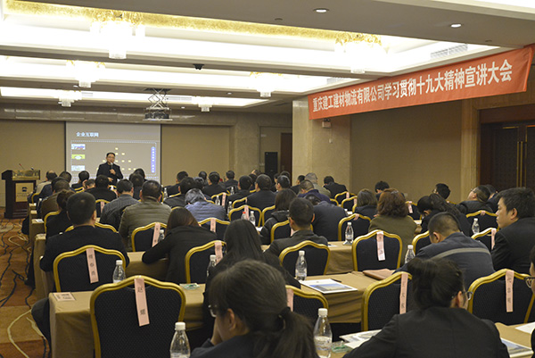2017年12月6日,重庆市宣讲队“进企业”宣讲分队成员、重庆市中小企业局张勇军副局长到公司进行了十九大精神宣讲,江北区经信委纪委书记刘春艳陪同参加。公司中层及以上管理人员、全体党员共152人聆听了本次宣讲,大会由总经理何兴茂同志主持。