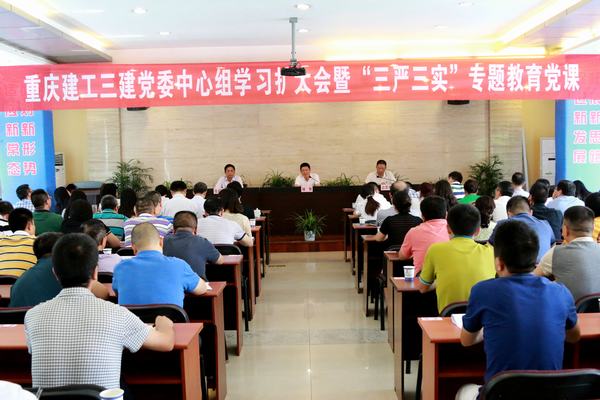 为认真传达上级党委党风廉政建设会议精神,巩固和深化党的群众路线教育实践活动成果,持续深入推进党的思想政治建设和作风建设,6月10日下午,三建公司党委中心组学习扩大会暨“三严三实”专题教育党课在公司二楼报告厅召开,三建公司领导班子成员,机关、分(子)公司负责人,项目经理及党支部书记共80余人参会,会议由总经理赵质彬主持。