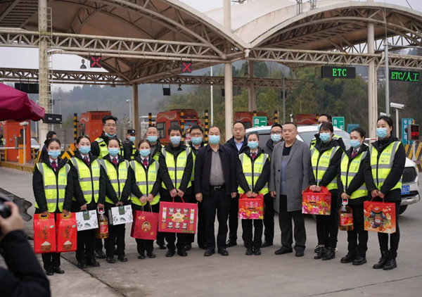 在农历除夕的前一日,1月30日上午,集团党委书记唐德祥驱车2个多小时专程来到位于遂宁的遂资高速公路公司,看望慰问春节期间坚守岗位的广大高速公路员工,实地检查春运工作安排和安全生产工作部署情况。集团党委委员、副总经理闫学军陪同慰问检查。