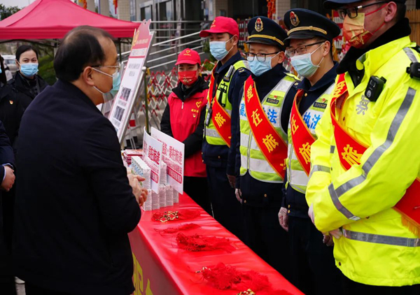 在服务区,遂资公司“情满遂资 爱在旅途”志愿服务公益活动正在火热开展。青年志愿者们向过往司乘人员发放疫情防控、安全行车宣传资料,并准备了牛奶、面包、口罩以及充满节日氛围的福袋、香囊等小礼品,免费提供给司乘人员。唐德祥指出,这种形式非常好,能进一步增强服务意识、提升服务质量,对打造服务区品牌、树立企业形象具有积极作用,要坚持下去!