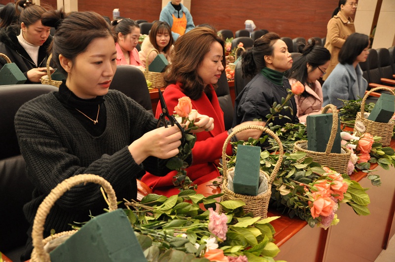 “众所周知,插花是一门独特的生活艺术,通过对花卉的定格,可以表达不同的生活意境。”活动聘请的资深花艺师现场进行传统插花艺术讲座,向在场的女职工详细介绍插花的基本技巧,包括花材、叶材的运用,布局结构和色彩搭配等专业插花知识。平时忙忙碌碌的机关女职工们放下了手头的工作,一边倾听,一边发挥想象力和创作力,亲自动手DIY艺术插花。大家纷纷表示:“以前有时候会购买现成的鲜花,今天有老师系统的讲解,还能够充分参与进来‘露一手’,觉得特别有意思。”