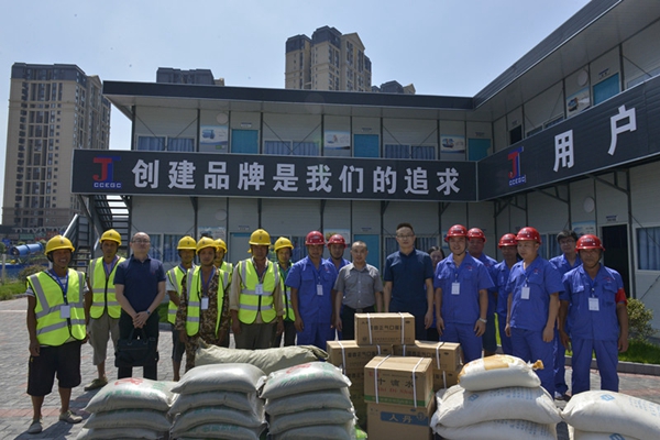 8月10日,集团副总经理罗平一行来到九建承建的北部新区金州初级中学校项目进行了高温慰问。九建党委书记、董事长杨光余等陪同慰问。