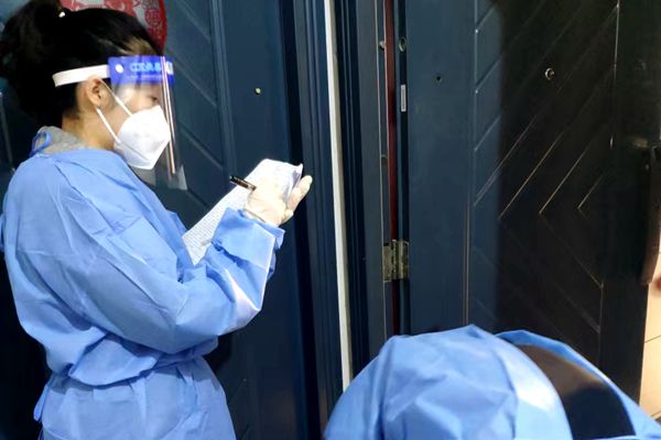 “你好,有人在家吗?”楼道里正在敲门的是四建职工冯泽慧,其所在的小区因涉疫被封控起来,小区共有四栋高层住宅,可是小区的志愿队伍却寥寥数人。知悉情况后,作为预备党员的冯泽慧第一时间主动向其所在的社区报到,就地下沉为志愿者。冯泽慧很快就收到了新任务,为一栋总计240户人家发放新冠病毒抗原检测试剂盒。穿戴着防护装,从25楼至下,敲着重重的铁门,挨家挨户为邻居们发放试剂盒并耐心解释用法。一栋楼下来后,N95口罩下的脸已经通红,面罩上挂着一层闪闪的水珠,脱下防护手套现出了红肿的手掌。“这栋楼有许多独居老人,向他们讲解更需要很多耐心,作为预备党员我很荣幸能贡献自己绵薄的力量,能用志愿红,换来大家的健康绿,很有意义。”冯泽慧笑着说。