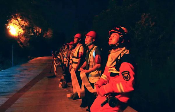 八建公司8名灭火突击队员连夜集结赶赴山火救援现场