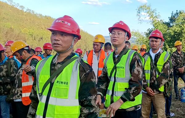 在巴南区界石镇火场,安装集团巴南应急医院项目部组建突击队员与消防官兵一道,枕戈以待