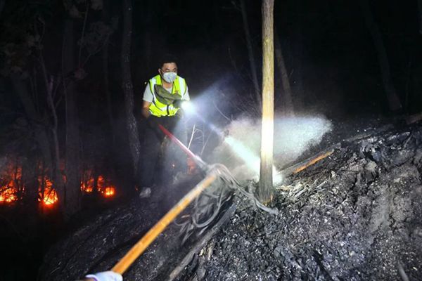 在巴南区界石镇火场,建安事业部市应急医院项目党支部组建了一支30人的灭火支援队
