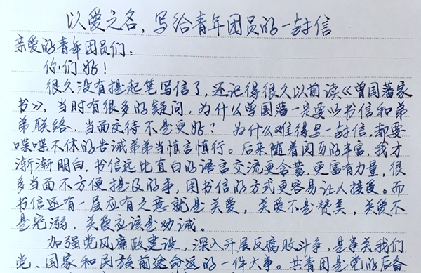 青年清,则国风正;青年廉,则国运昌。作为新时代青年,更应定期自重、自省、自警、自律,不忘为人民服务的初心,不忘爱岗敬业的初心,不忘廉洁正气的初心,不断为新时代青年注入新内涵。