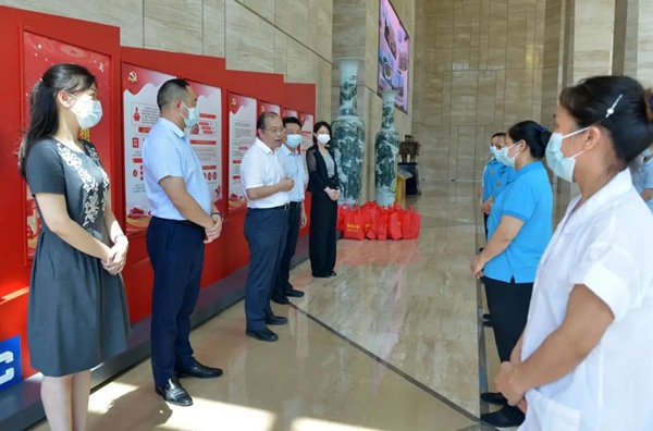 8月8日下午,在重庆连晴高温下,集团党委书记、董事长唐德祥,党委副书记鲁学佳一行,到集团总部后勤相关部门看望慰问基层干部职工,给坚守岗位的一线职工送去集团领导的关怀和防暑降温物资。
