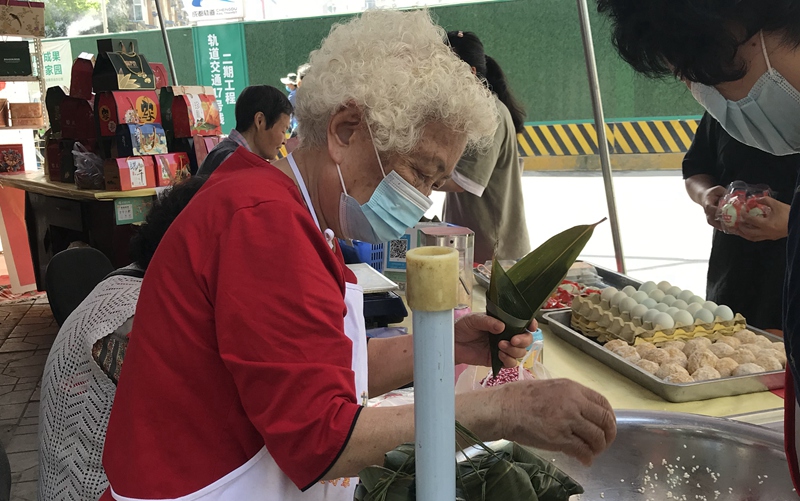 6月,端午前夕,位于九建公司成都基地的马鞍东路粽子文化节开街了。