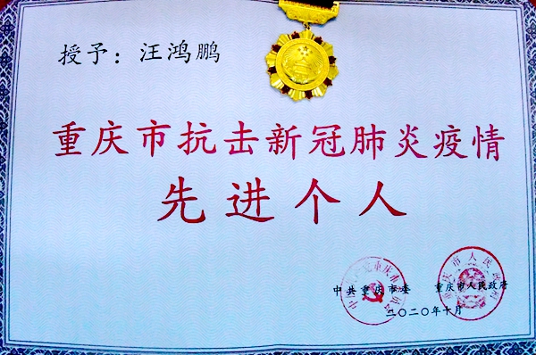 ——伟德体育汪鸿鹏获评“重庆市抗击新冠肺炎疫情先进个人”