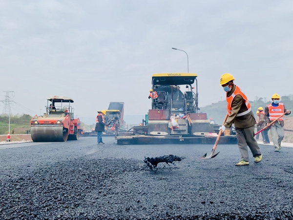 4月15日,市政一公司歇马工程现场摊铺机施工图