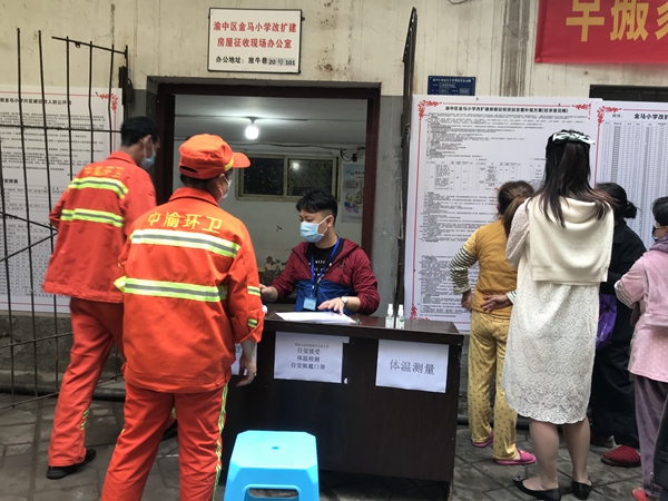 3月25日,市政开发公司金马小学改扩建房屋征收项目开始进行征收补偿方案公示,图为现场工作情况