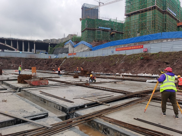 4月1日,城建集团市级重点工程蔡家嘉陵江大桥项目工人争分夺秒抢夺工期