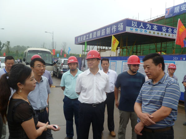 7月19日,西永微电园开发有限公司邓达举董事长、郭坚总经理一行在富士康重庆科技园二期工程打印机项目D04栋厂房召开现场会议,与集团董事长党委书记杨镜璞,副总经理符建,总承包公司总经理党智勇等进行高层会晤。