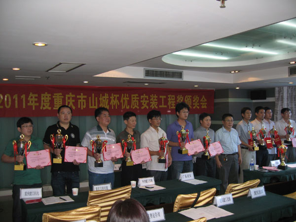 会上表彰了荣获2011年度重庆市“山城杯”优质安装工程奖的13个工程。据悉,三建公司渝富公司总部项目、市政府所属机关片区危旧房改造项目获此殊荣。
