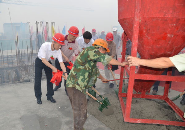 但波在讲话中向广电华府住宅小区(1―4#楼)工程主体封顶表示祝贺,并对项目部一年多来的努力表示感谢,他要求项目部继续努力,完成后续施工任务。尹长征对工程在短短10个月的时间里顺利断水表示满意,对二建公司带领的建设团队建设出高质量、高水平、高标准的工程实体表示感谢,并对工程后续施工表示了期待。他说,工程主体封顶标志着第一阶段的施工任务圆满完成,希望项目部继续努力,保质保量完成后期工程建设。随后,但波与相关领导共同浇筑最后一培混凝土,完成封顶最后一道工序。鞭炮齐鸣,掌声四起,二建公司广电华府住宅小区(1-4#楼)工程主体顺利封顶。