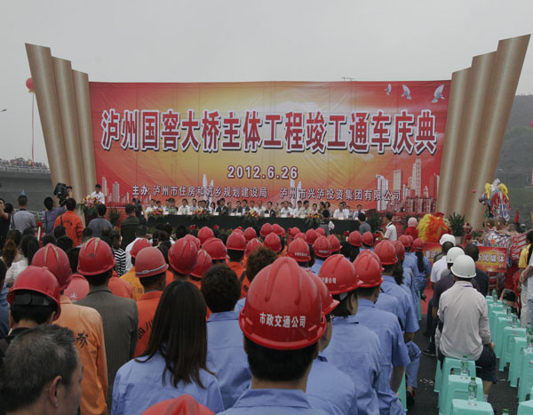 6月26日上午9时,由市政交通公司承接的四川泸州市东岸互通立交工程竣工通车庆典在国窖长江大桥东岸现场隆重举行。泸州市委书记刘国强,市长刘强,市人大主任陈雁,市政协主席喻双,副市长刘云等四大家班子以及市政交通公司副总经理王仁其参加了通车庆典。仪式由泸州市副市长刘云主持。
