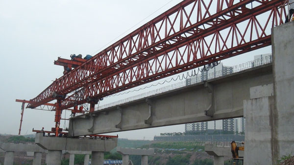 下午3点,只见载着40米长T梁的运梁车自梁场缓缓驶向架桥机方向,运梁车走行平稳,安全可靠,与架桥机对位准确。5点整,T梁在架梁机的牵引下缓缓升起,吊梁、移梁、落梁,均精准到位。当T梁平稳地吊放在预定的桥墩支座上的那一刻,伴着一片鞭炮声响,现场一片欢呼。