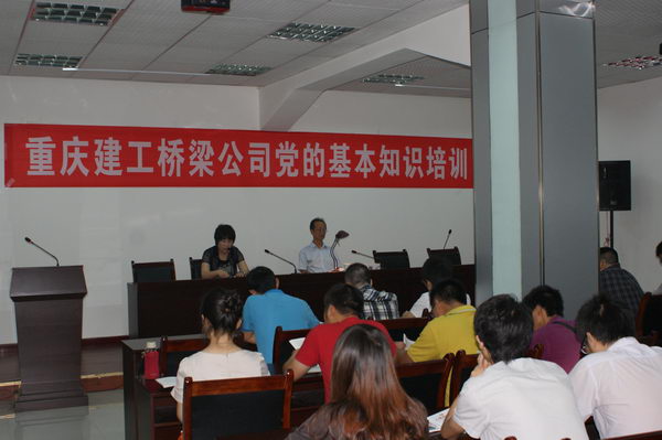 为庆祝中国共产党成立91周年,6月21日,桥梁公司党委组织就近党员和二级单位(项目部)入党积极分子共50余人,进行了党的基本知识培养教育,公司在家的领导参会。