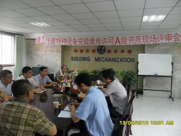 通过该司资质办及分公司相关部门近三个月来的共同努力, 6月13日,重庆市特种设备检测中心及重庆市质量技术监督局五名专家亲临住建机械化分公司对特种设备安装维修A级资质进行现场评审,对现场评审内容进行了严格的审核,对部分资料不足之处进行了详细指导。整个评审过程有条不紊,最后该司顺利通过了特种设备安装维修A级资质的现场评审。