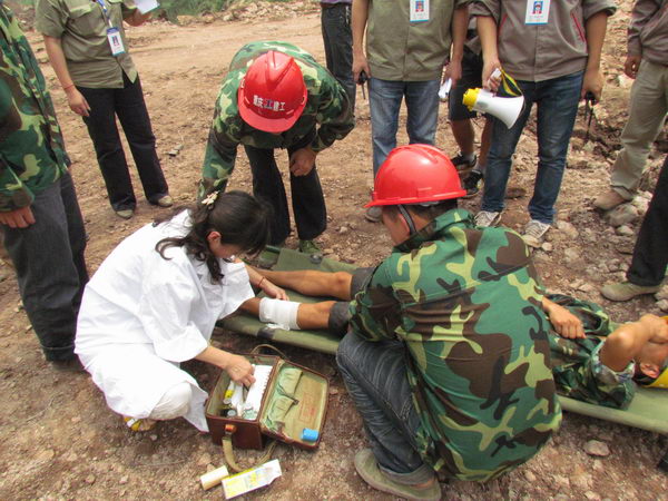 随着轨道公司总经理刘宗建一声令下,下午2点30分,演练正式开始:抢险组按照分工迅速携带工具、装备,奔赴指定抢险地点,有条不紊地对设备、物资进行转移,并囤积沙袋对现场低洼地带进行保护。救援组在接到伤员报告后迅速进入现场对伤员进行简单救治并拨打急救电话,确保伤员在现场最快速地接受治疗,并及时送到医院进行救治。演练中,每名参演人员充分发挥了主观能动性,快速而准确地完成各自任务,演练圆满结束。
