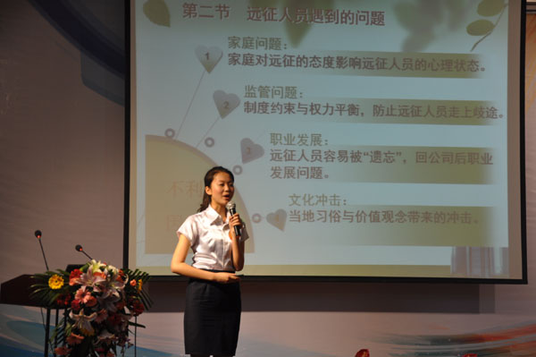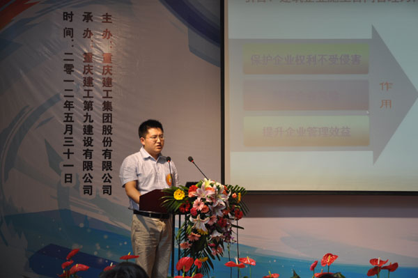 两位选手从论文的撰写到多媒体课件的制作,从演讲语言到舞台动作,都呈现出亮点。第一位参赛选手包旭的论文《浅析建筑企业施工合同管理》逻辑缜密,语言朴实,深入剖析了建筑企业施工合同管理的现状,并提供了切实可行的进步方案,这篇论文长达16页,将近一万字,成为此次论坛篇幅最长的论文。在演讲台上,作为公司人力资源部经理的他,展现了青年人少有的成熟与稳重,戴上眼镜,俨然一副“学术范儿”,条分缕析,娓娓道来。