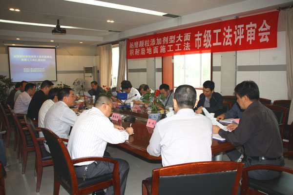 该司课题组成员、三项目技术经理刘忠通过PPT图文并茂地从工法特点、工艺原理、工艺流程、效益分析、应用实例等11个方面介绍了《耐磨颗粒添加剂型大面积耐磨地面施工工法》。专家组认真听取了工法介绍,并结合申报书面材料仔细审阅,随后进行了认真探讨,并就申报材料提出了各自的意见和建议。该司总经理赵质彬对各位专家的指导和工作表示感谢,并就该司工法的选题予以肯定,对申报材料谈了自己的几点看法和意见。该公司总工程师李永毅在会上对各位专家提出的问题进行了回答,对专家们提出的宝贵意见深表感谢,李总表示,该司课题组将结合专家意见认真进一步完善申报资料,以使本工法尽善尽美,争取顺利通过市级工法评审,向更高一级迈进,不辜负市质监总站领导对公司的期望和要求。