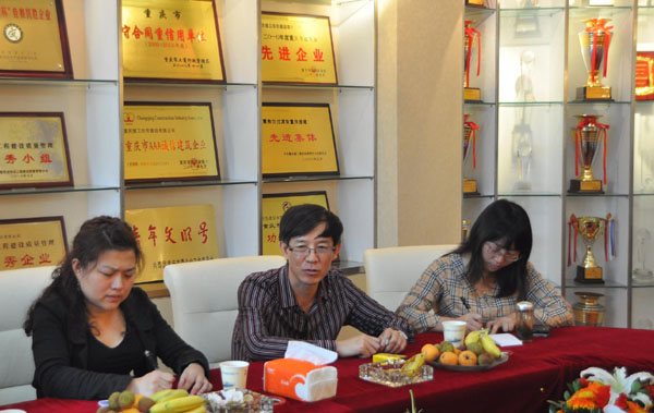 调研会上,调研组领导对在江北辖区内在建的财信广场、招商江湾城、群众艺术馆等工程,在质量、进度、安全生产、文明施工等方面所做出的成绩提出表扬和肯定。调研组与公司领导还就现国家宏观调控房价后重庆市房地产业格局所发生的变化,工程建设过程中易发生的质量、安全事故和现场管理等,进行了广泛的交谈。会后,调研组领导代表江北区工程建设安全管理站党支部、工会,慰问了住建公司特困职工彭子君同志,鼓励他努力工作照顾好家庭,并在住建公司党委、工会的帮助下争取早日走出困境。