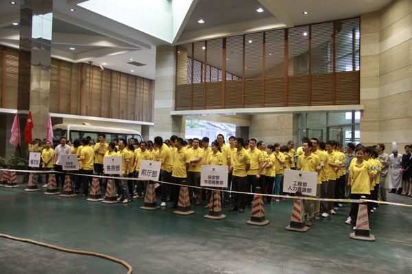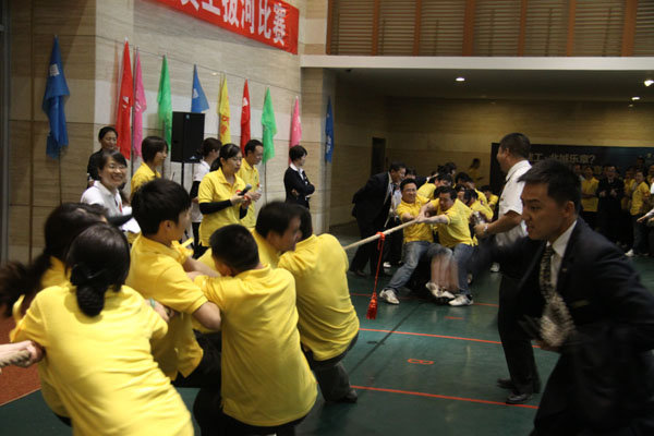 本次比赛共有9个各部门的6支代表队参加且采用抽签淘汰赛的方式进行。每轮获胜队晋级下一轮,再进行下一轮的比赛,直到决出冠亚季军。力量的对抗通过一根绳相互传递着,博弈着,赛场内外的声浪一浪高过一浪,有选手挥汗如雨的“壮烈拼杀”,有助威团竭尽全力的“撕心裂肺”,也有胜利者的“趾高气昂”,更有失败者的“扼腕叹息”……经过几番“壮烈”的厮杀,最后站在决赛场地的两队分别是保安部和销售部联队以及前厅部队。此时空气中弥漫的火药味几乎令人窒息,场内场下聚集了前来观战和助威的“亲友团”,狭路相逢勇者胜,大战一触即发。通过三局两胜制的比赛最终前厅部队笑傲群雄,荣摘桂冠。保安联队和工程部联队分获二、三名。