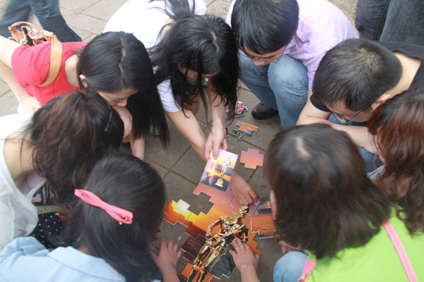 户外活动共设立“智慧寻宝”、“齐心协力”、“智慧拼图”、“知识抢答”四个项目,按照比赛规则将参加活动的全体人员以红、黄、蓝、绿、粉、橙、紫、咖8个颜色分为小组进行比赛。