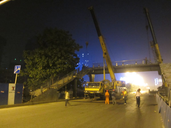 5月15 日凌晨6点,在历时八个小时的挑灯夜战后,由市政交通公司实施的高九路快速公交(BRT)示范线优化工程虎头岩、柏林天桥顺利完成吊装拆除,这一关键环节的攻克为整个工程的全面推进打下了坚实基础。