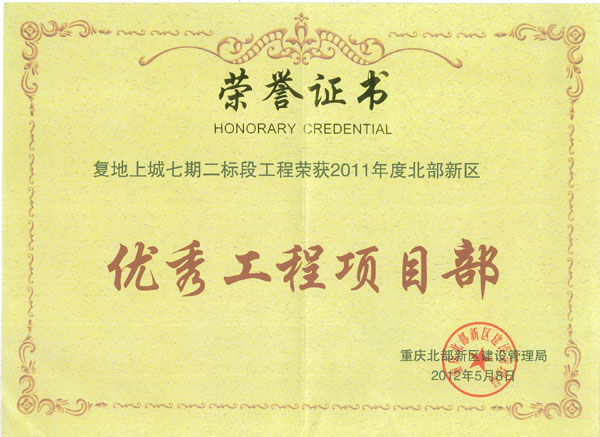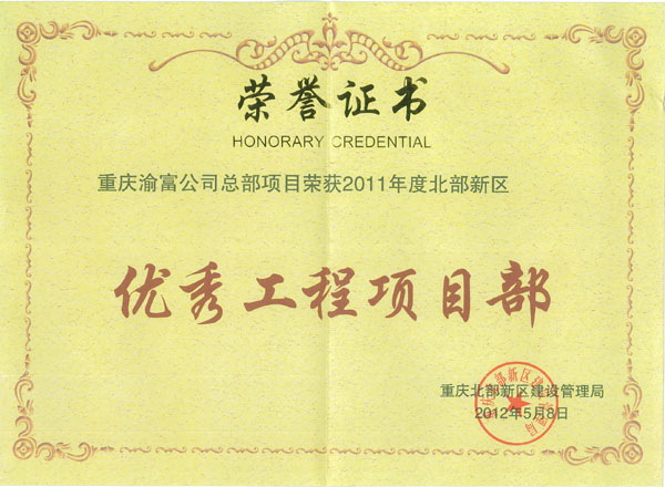 5月8日,重庆市北部新区2012年建设管理工作会在北部新区金山大厦北楼会议厅隆重召开。会上,由三建公司承建的复地・上城七期二标段项目及渝富项目被评为“2011年度北部新区优秀工程项目部”,项目经理杜函京代表公司上台领奖。