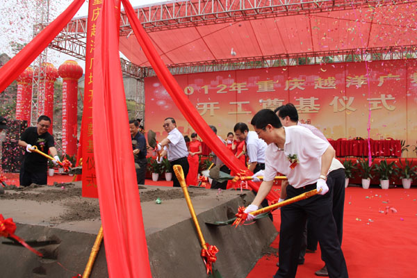 5月8日上午,由重庆越洋房地产公司开发的首个大型典范性项目―重庆越洋广场项目奠基仪式在江北嘴隆重举行。重庆市台办主任王泰来,重庆市台商协会副会长陈开国,重庆越洋房地产公司董事蔡明吉、翁步进、蔡锦松,三建公司董事长杨帆及其他相关单位领导出席仪式。