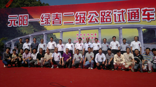 4月27日上午,元阳至绿春二级公路通车仪式在绿春隧道出口隆重举行。云南省政协副主席白成亮,省公路局副局长范德如,红河州州委书记刘一平,州长杨福生,州人大主任普绍忠,州委常委、副州长李扬等省州县相关部门领导和来宾,以及集团副总经理唐建华、总承包公司副总经理徐安军、集团红河州公路建设指挥部副指挥长黄政出席仪式。红河州州委常委、副州长李扬主持仪式。