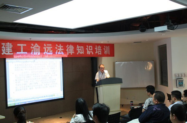 渝远公司特邀重庆昆德律师事务所陈思律师作为本次培训的讲师,他从合同特点、合同风险管理、合同风险防范、争议条款处理、签订合同注意事项等五大方面进行了细致的阐述,并结合建筑装饰公司特点,深入浅出地对法律条款、合同中应注意的内容进行了讲解。最后,陈律师结合实际案例,对比较重要的合同风险防范、争议条款处理、违约处理等内容做了重点讲解。
