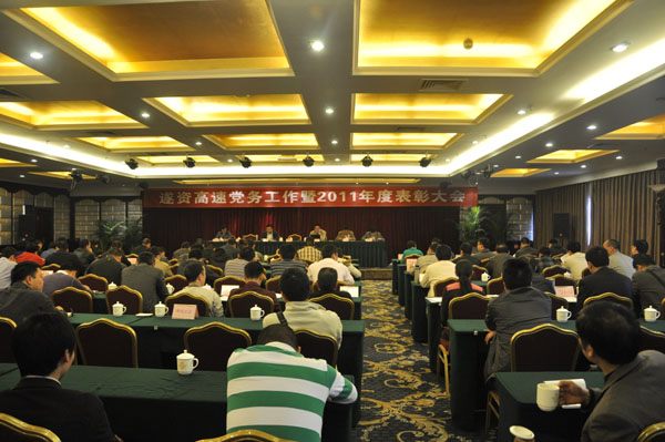 4月6日上午,遂资高速公路党务工作暨2011年度表彰大会在遂宁市兴源酒店兴源厅召开。集团纪委,集团副总工程师、高速公路公司党总支书记曹兴松,集团涪南、遂资高速公路公司总经理冯强,遂宁市交通局党委工作部主任罗实,遂资公司全体党员干部,遂资高速各参建单位代表等100余人参加了此次会议。会议特邀重庆市检察院一分院副厅级检察委员会专职委员、重庆市检察院法制宣讲团成员李敦华和重庆市检察院一分院预防职务犯罪处周柏林处长为参会人员作预防职务犯罪讲座。