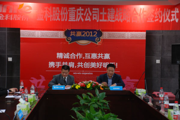 4月9日上午,住建公司与重庆金科实业(集团)股份有限公司在金科集团总部签订了战略合作协议。住建公司董事长、党委书记郑建武,副总经理喻显平,十一项目部经理胡明刚与金科集团重庆公司董事长蒋思海等领导一同出席了签约仪式。此次合作是住建公司与金科集团真正意义上的土建战略合作。参会领导们衷心祝愿双方合作愉快并结出累累硕果,力求为双方创造更大的价值和实现可持续发展。