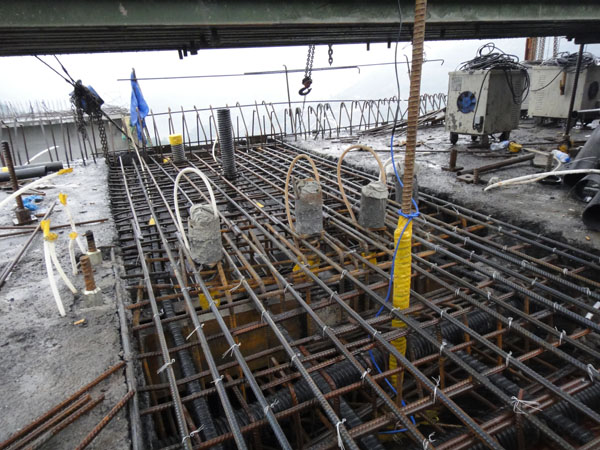 沙塘坝大桥是南涪高速公路第二控制工程,由交建集团桥梁工程项目管理部组织施工。沙塘坝大桥左幅15#~16#(即左线15#T构)、右幅8#~9#(即右线8#T构)墩之间的梁体上跨在建的南涪铁路,如果不采取控制手段,桥梁施工将对其施工及运营过程造成严重安全隐患。为消除安全隐患,项目部提出沙塘坝大桥左线15#T构先于主线其余3个T施工,在南涪铁路试运行之前,与16号的边跨提前合龙。经与业主、监理、设计、监控等单位协商,相关单位及部门决定同意经理部的建议。