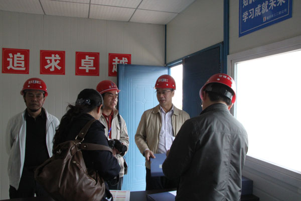 石怀强副书记一行在施工现场,细致入微地视察工程的进展情况,当看到施工现场近万名职工正在紧张施工的场面的时候,他对工程建设取得的成绩给予了高度肯定,鼓励大家一定要迎难而上,科学发展,克服当前面临的困难,争取打好龙州湾公租房项目攻坚战。随后,石书记还一一检查了各组团的党建、农民工夜校等工作。