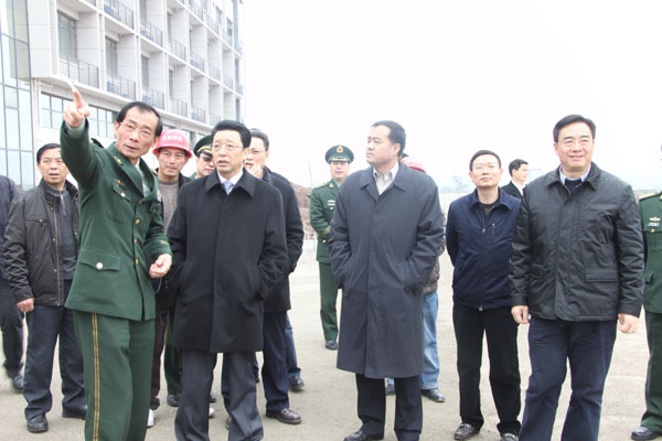 2月29日下午,重庆市副市长刘学普,市公安局党委书记关海祥一行考察调研了由集团承建的消防总队基地。公安局副局长、武警重庆市消防总队党委书记、总队长傅纪成,消防总队政委张剑明,集团董事长、党委书记杨镜璞,总承包公司总经理刘先华等陪同调研。