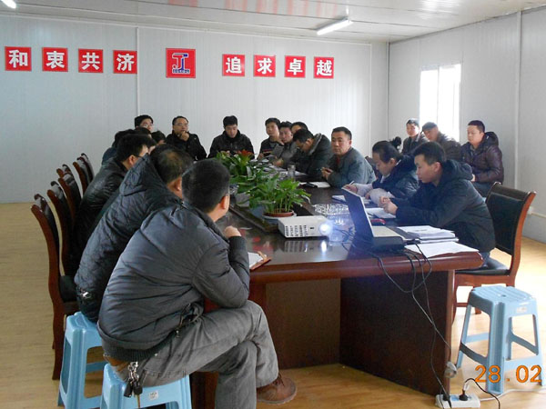 生产例会在简洁大方的新建总部会议室召开,会议由项目经理周伟主持,参会的有项目管理部全体管理人员,市政一分部,市政二分部,土建一、二、三分部,物流公司等参建单位的项目部经理、执行经理、技术负责人等。会上,各分部汇报了近期工程完成情况、存在的问题及解决的办法。针对公租房建设是基于市重点工程、民生需求等特性,周伟经理在会上对工程质量做出了严格的要求,对工程安全管理体系的建立进行了策划,同时对工程进度、物资供应、各子分部的绩效考核制度和剩余拆迁配合等工作进行了安排,会议的召开标志着木耳公租房工程进入全面施工局面,即将掀起公租房建设高潮,争取早日向重庆市人民交出群众满意的宜居住房。