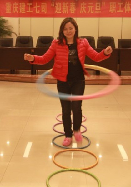 呼啦圈比赛采取按照转呼啦圈走圈最少时间评定成绩。比赛场热闹非凡,其乐融融,参赛员工个个精神抖擞。当裁判员发出“预备起”的令声后,选手们立即扭动腰肢,转起呼啦圈,彩色呼啦圈在腰间不断舞动,哨子声、喝彩声、掌声时而可闻,经过了一番激烈的比赛,冠、亚、季军被来自市场营销部姚延琳、党群工作部贾森、成本控制部詹浩月三位同志摘得。