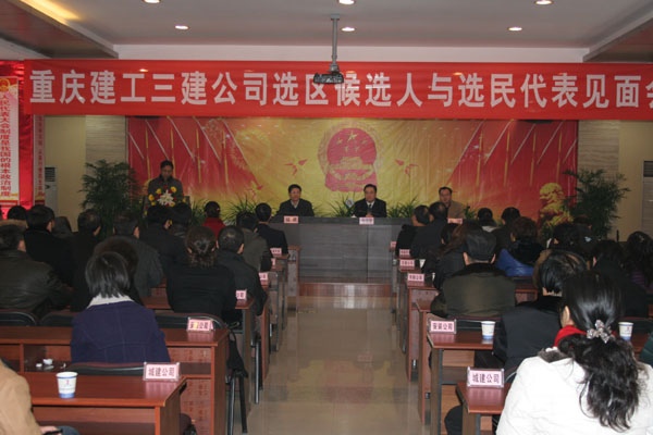 会上,三建公司董事长、党委书记杨帆,建工集团董事长、党委书记杨镜璞,原实业公司党委副书记、副总经理,现建工技校党支部书记张何3位候选人向选民代表一一作了自我介绍基本情况和表态,各自谈了如果当选如何“履职”的承诺。候选人精彩而充满责任的感言和回答选民代表所关心的提问,赢得了选民代表的阵阵掌声。三建公司党委副书记伍绍明强调,今天的见面会按照上级选举办的要求有序进行,现已完成全部环节和内容,3位代表候选人分别作了全面、详细的发言和真诚的表态,并且认真回答了大家所提出的有关问题,通过见面会,做到了知人、知名、知情,相信本选区所有选民,一定能够按照选举委员会的部署和安排,认真履行好自己的民主权利,选出自己满意的人大代表。