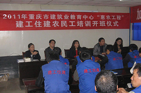 为了全面加强农民工业务技能培训,确保建设工程质量和安全文明生产,提升一线建筑业农民工整体素质。11月29日下午,在建工住建公司第四工程项目部招商江湾城T4栋项目举行了农民工夜校开班仪式。来自该项目50多名农民工参加了开班仪式,该司党委副书记、纪委书记、工会主席翟永秀、公司工会办公室主任杨永碧、第四工程项目部经理刘阳、党支部书记毛应参加了开班仪式。