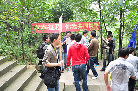 最后所有参赛人员在山顶上还进行了“真情传递”等小游戏,阵阵笑声在山顶飘散。大家纷纷在主题横幅上签名留念。