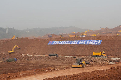 该工程位于茶园新区经济开发区,处于剥蚀丘陵及洼地相间地带,地形落差较大,坡度较陡,土石方量集中,约400万立方,道路全长约4.1公里。项目天气状况异常恶劣,雨水较多,对平场及路基工程有很大的影响。为了保质保量、安全如期完成该项工程,自2011年11月8日开工以来,公司就组建了一支英勇骁战的精锐之师,组织了220余台大型机械设备进行昼夜抢工。到目前为止,我司已完成平场土石方约240万方,道路约1800米。