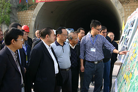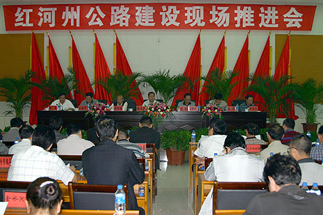 杨福生州长一行对蛮金、元绿两条二级公路工程建设情况现场实地察看后,认为工程施工总体进度是比较好的,对施工单位现阶段的工程建设情况给予了充分肯定,特别是对重庆交建集团施工的蛮金路A标段工程进度感到满意和欣慰,并还表达了州政府对伟德体育集团各参建单位的感谢之意。现场调研后,州政府在元阳县召开了有各级政府和蛮金、元绿路施工单位负责人参加的全州公路建设现场推进会议。会上,在传达了云南省公路建设现场推进会文件精神后,红河州政府相关负责人对工程建设下一步工作和工期目标作出了指示,要求各施工单位要紧紧围绕最后工期目标,全面动员,全力冲刺,争取早日完成工程建设任务,实现边疆人民企盼的百年梦想。